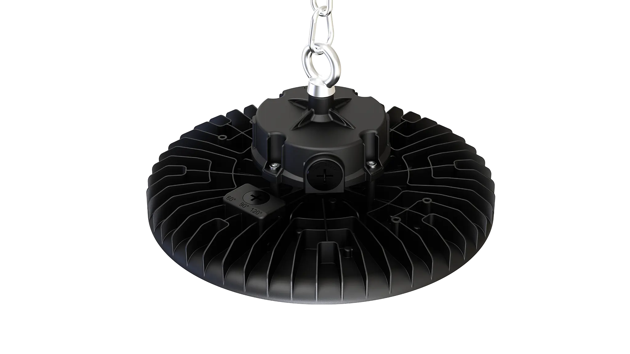 Flexible Installation - Supports hook/chain suspension and ±90° rotatable U-bracket mounting for all installation conditions.